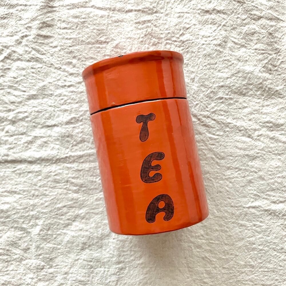 [ 再入荷 ] オレンジ色の漆茶筒|欠け有03
