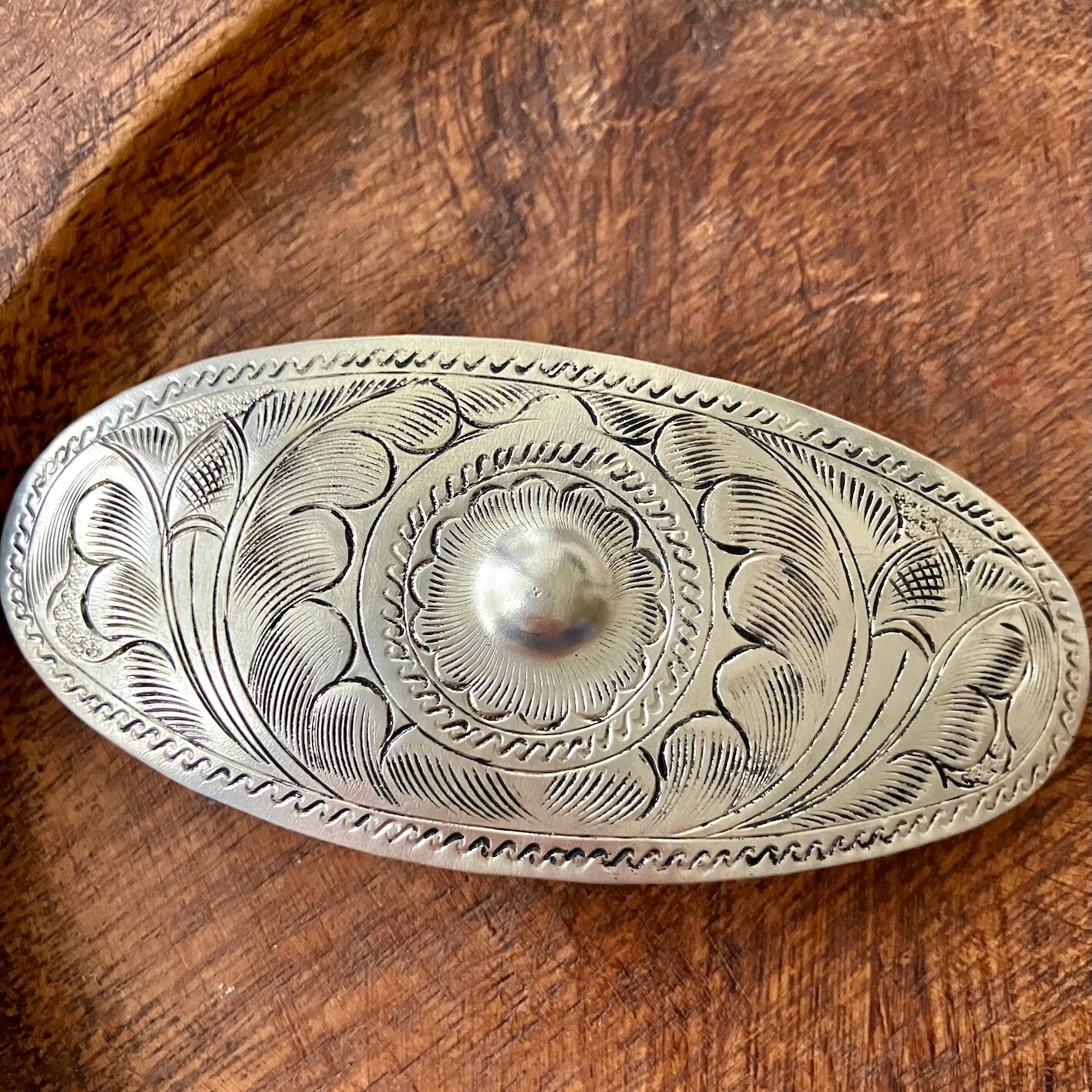 ニッケルの特性を活かした、鈍い光沢感と強度を兼ね備えたこのバレッタは、