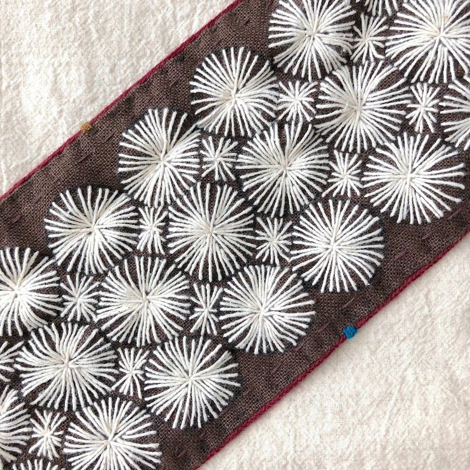 みっちり刺繍の入った紐の部分の布を二つ折りにして
