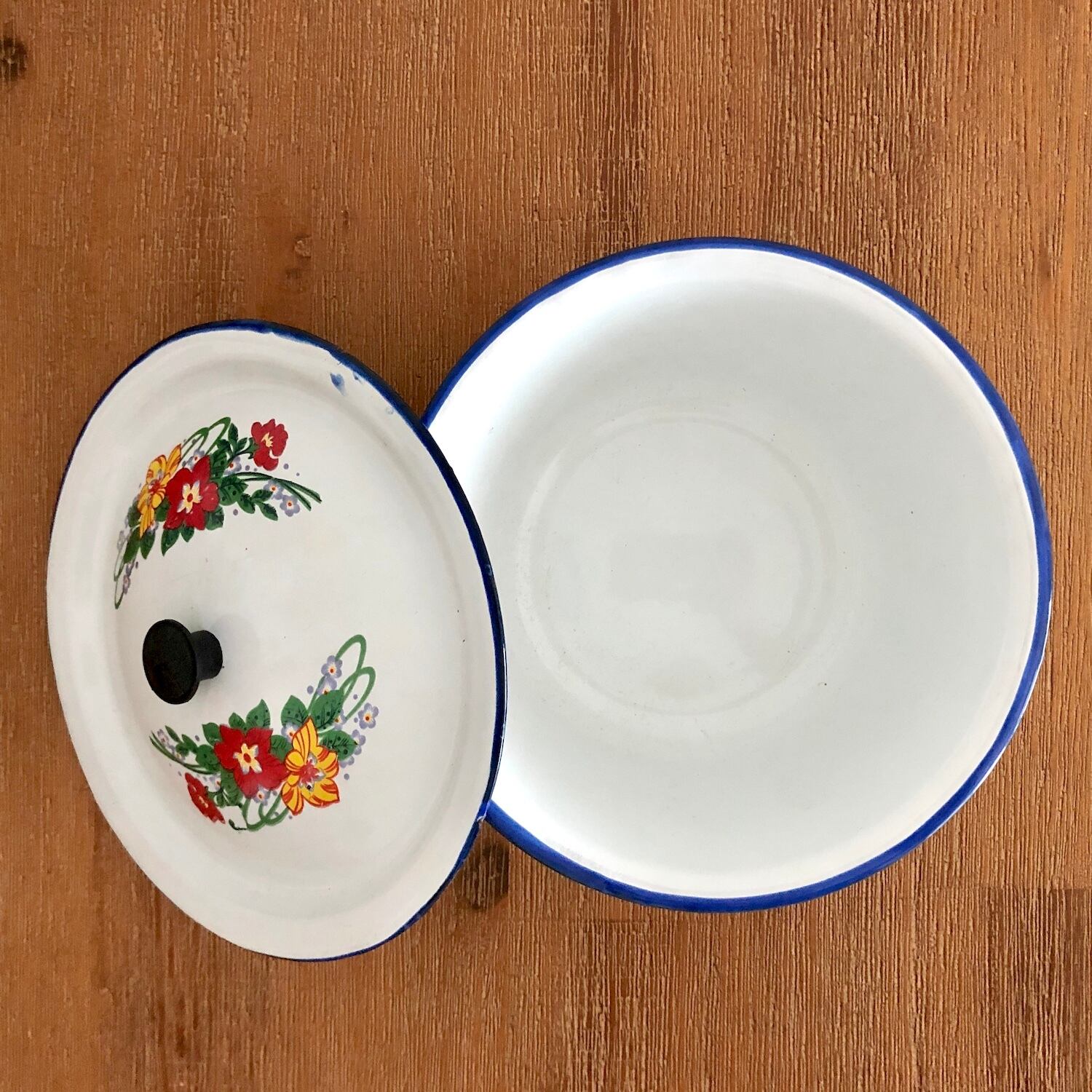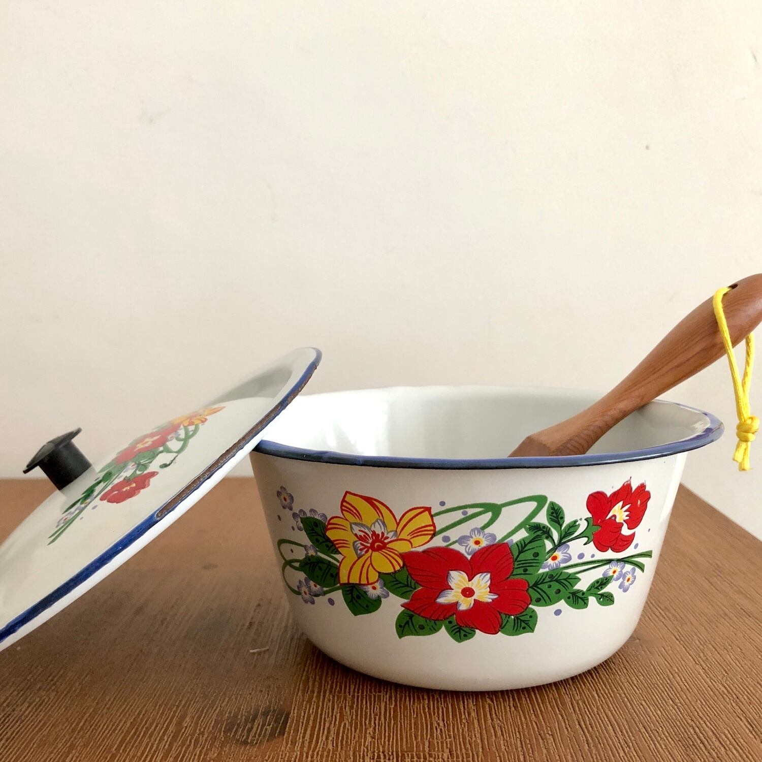 レトロな花柄ホーローボウル|蓋付き
