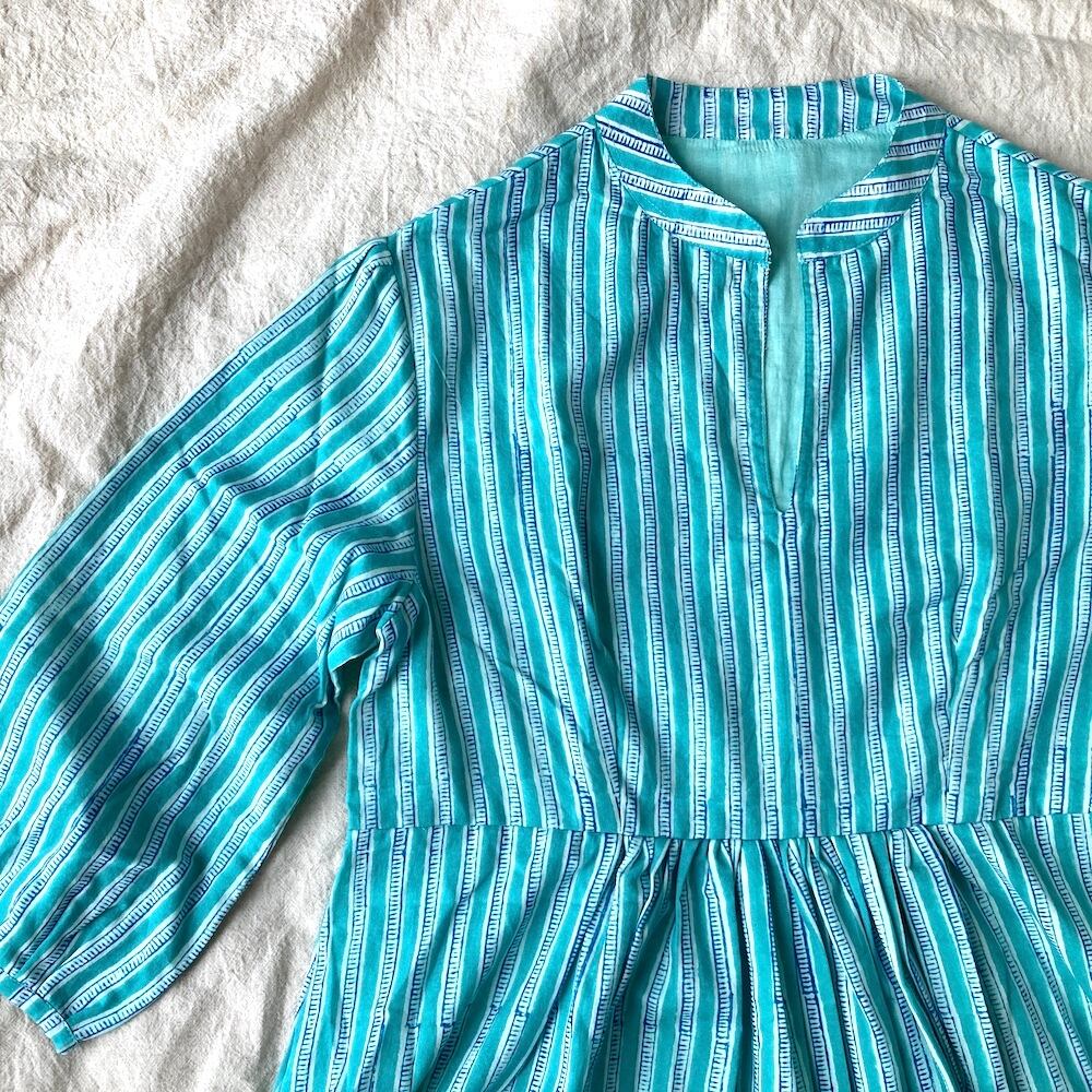 ブロックプリントの特徴である色むらや版ずれ、かすれや色トビが見受けられます。